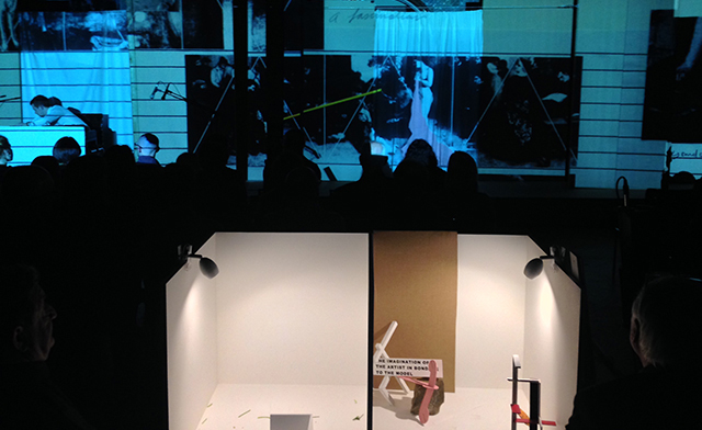Based on Courbet’s painting 'The Painters Studio', conflated with Breughel’s 'The Blind Leading the Blind', The Changing Room is a true Gesamtkunstwerk where musical improvisation is combined with a choreography of objects, video and movement.
